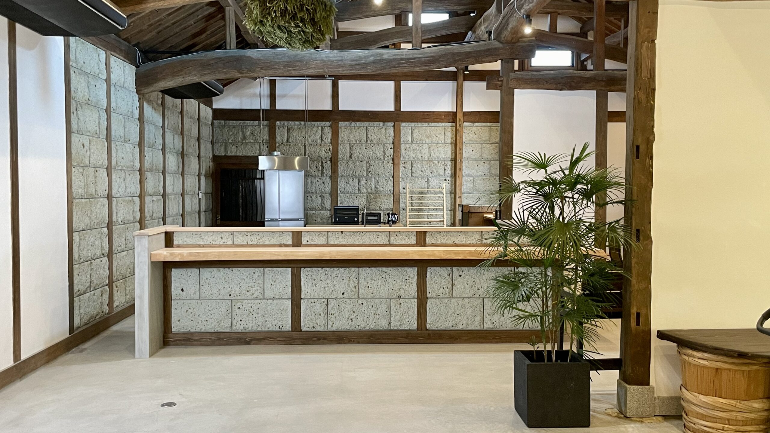 古民家におけるオープンキッチンのフルオーダーキッチン。